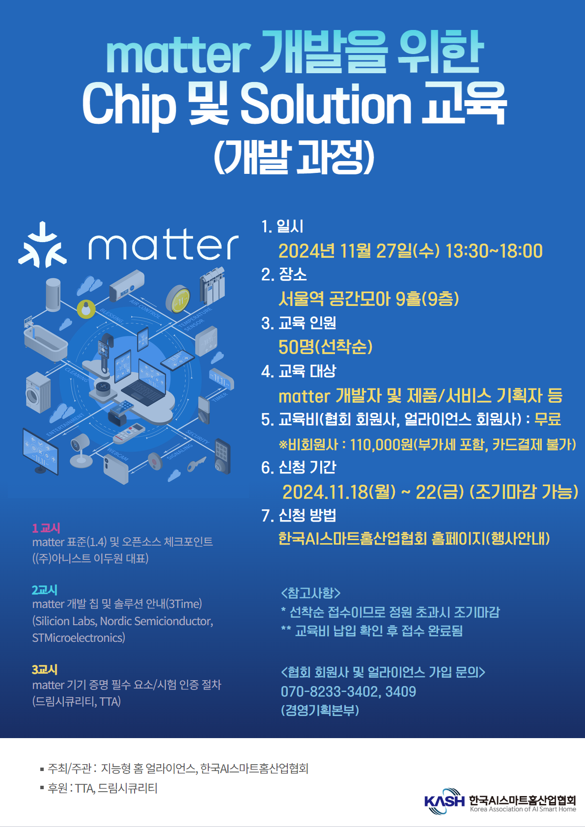 다음 교육도 마찬가지로 지능형 홈 얼라이언스 회원사, 협회 회원사에게 할인/특전을 제공할 예정이다.