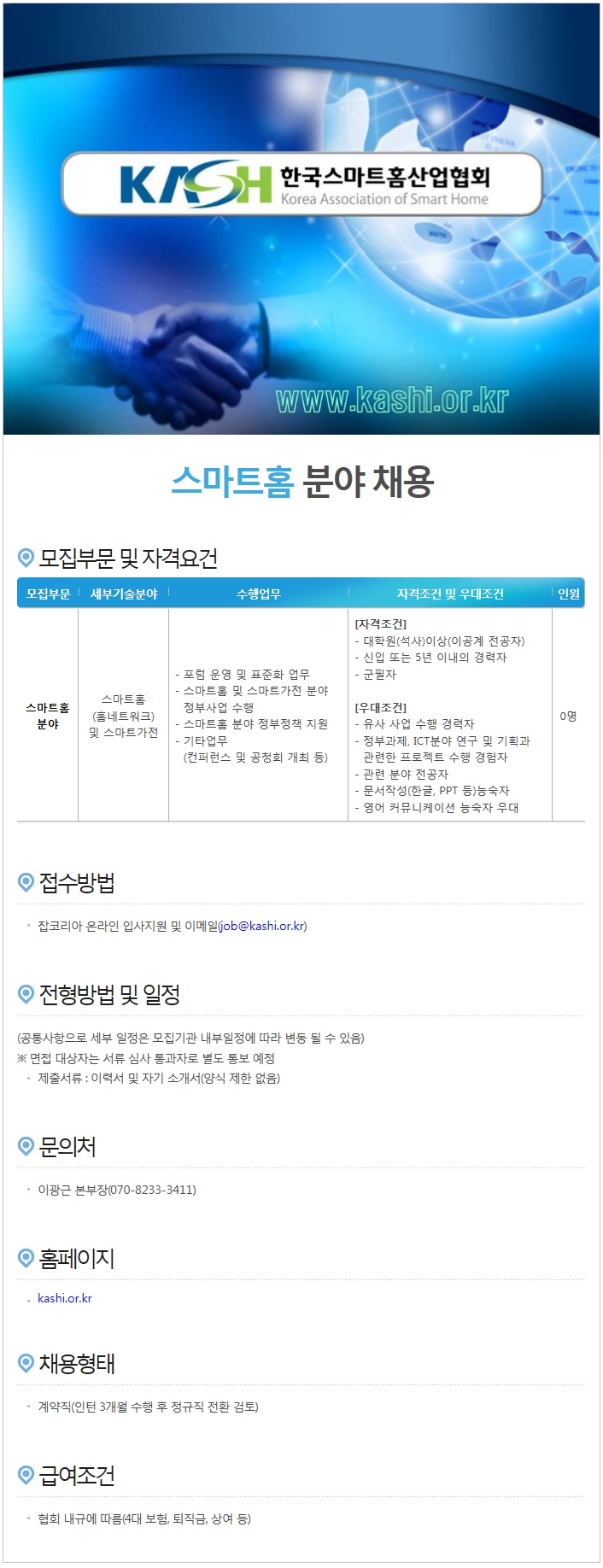 한국스마트홈산업협회 신규인력 채용공고(~2/9)