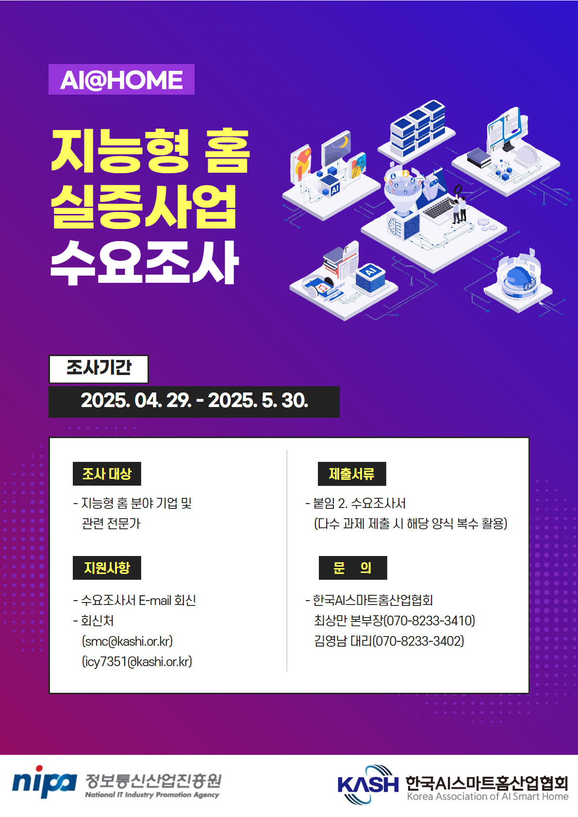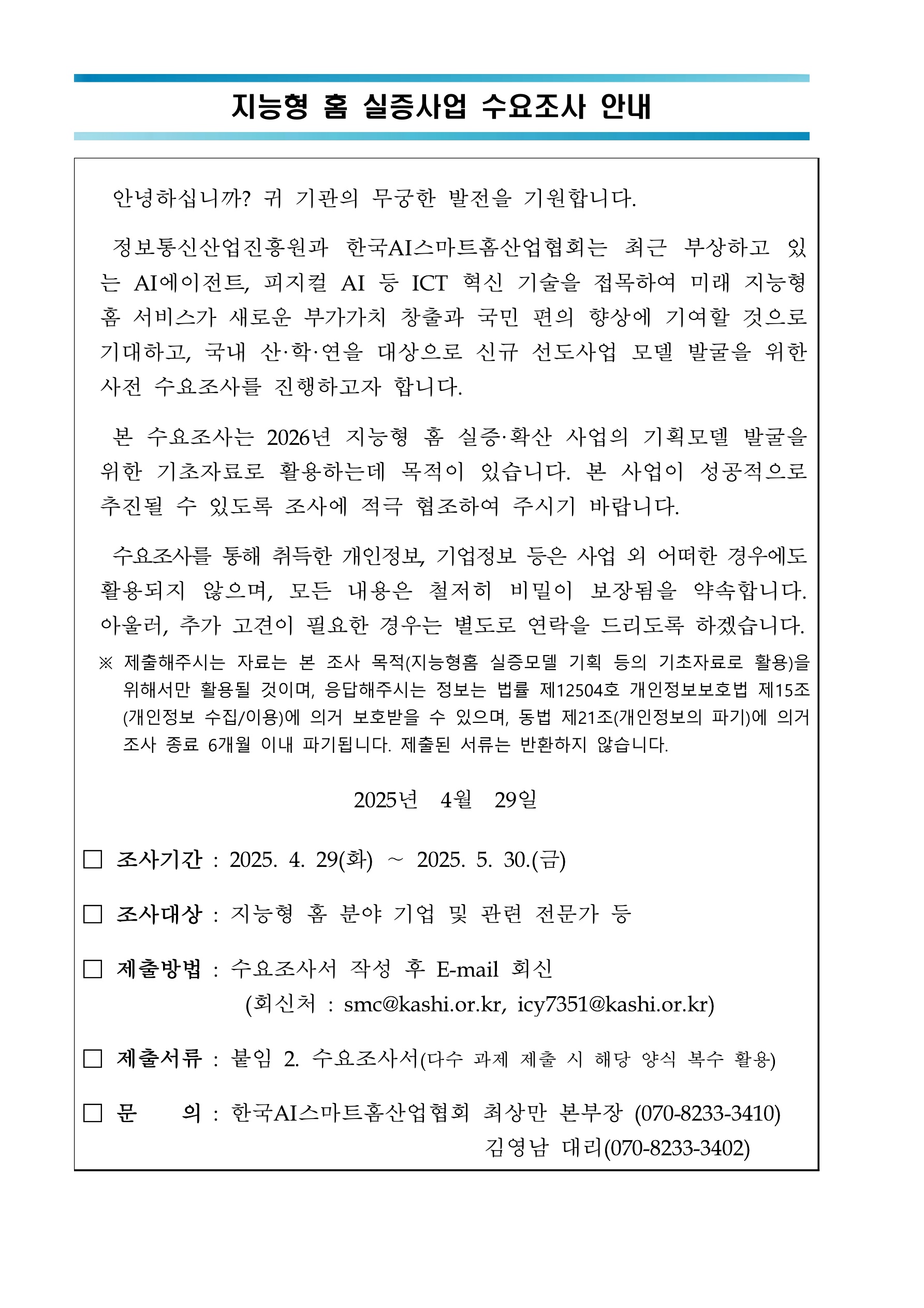 [한국AI스마트홈산업협회, 정보통신산업진흥원] 26년 지능형 홈 실증사업 수요조사