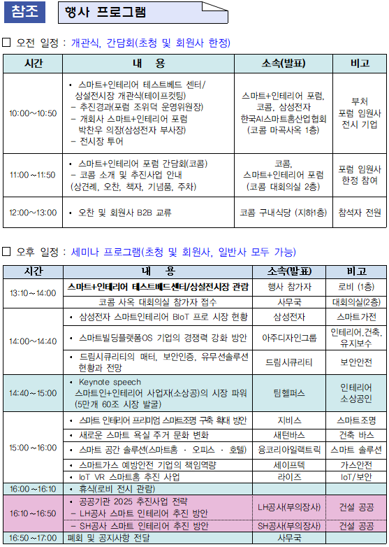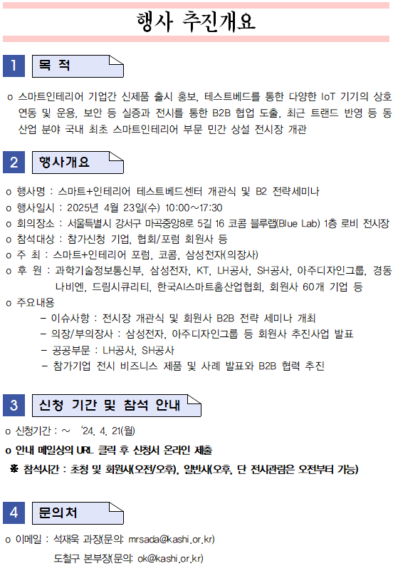 스마트+인테리어 테스트베드 개관식 행사 및 B2B 전략세미나 참가 안내