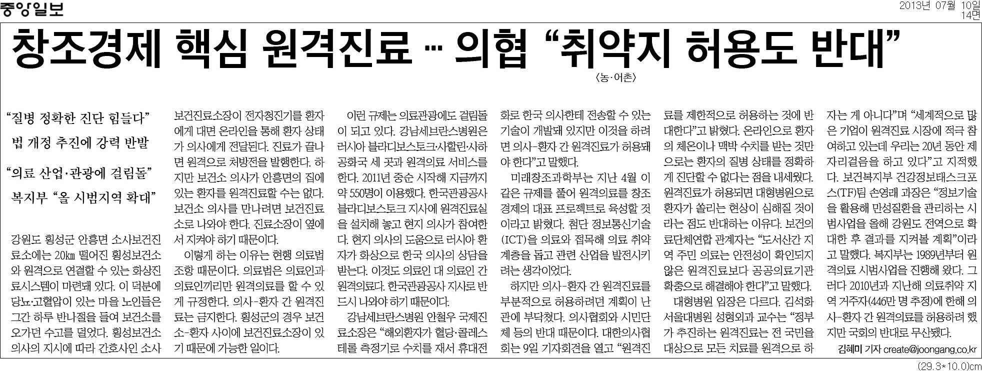 창조경제핵심 원격진료, 의협 "취약지역도 반대"