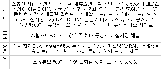 【표】삼성전자 스마트TV 콘텐츠 해외 협력 사례