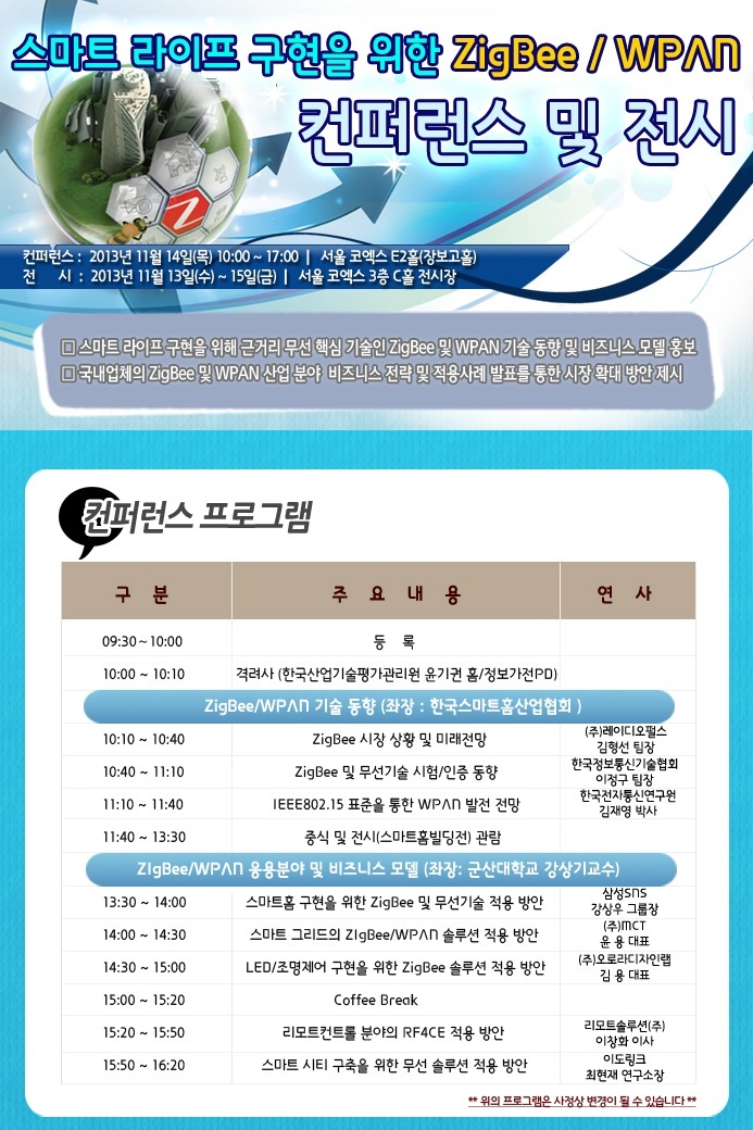 o 행 사 명 : 스마트라이프 구현을 위한 ZigBee/WPAN 컨퍼런스