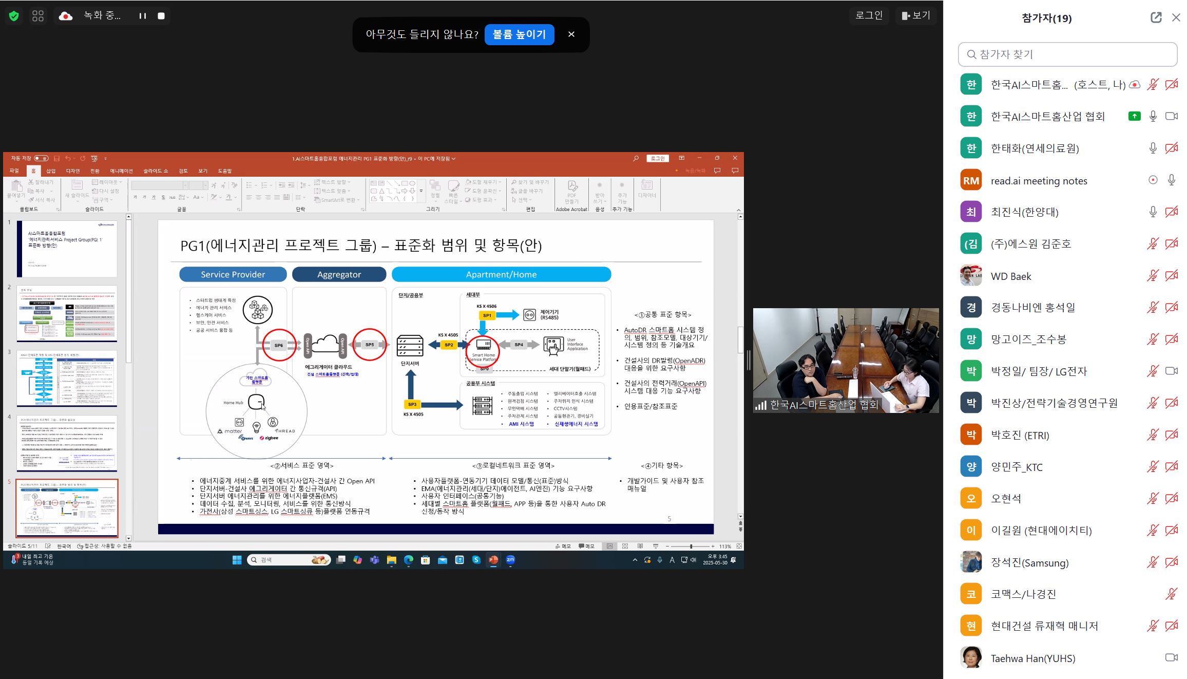 금년 KS표준 제·개정 관련 논의를 위한 「AI스마트홈융합포럼 지능형 홈네트워크 KS/SPS WG 25-1차 회의」를 5월30일 개최하였다.