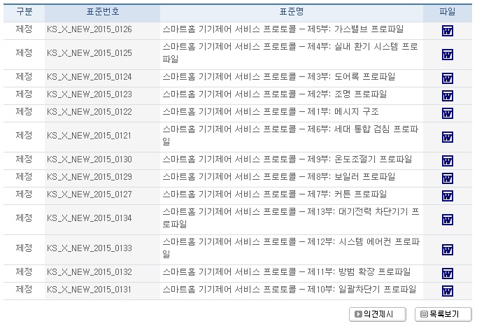 스마트홈 기기제어 서비스 RS-485 프로토콜 13종에 대한 KS 예고고시가 아래와 같이 공고되었음을 알려 드리오니,