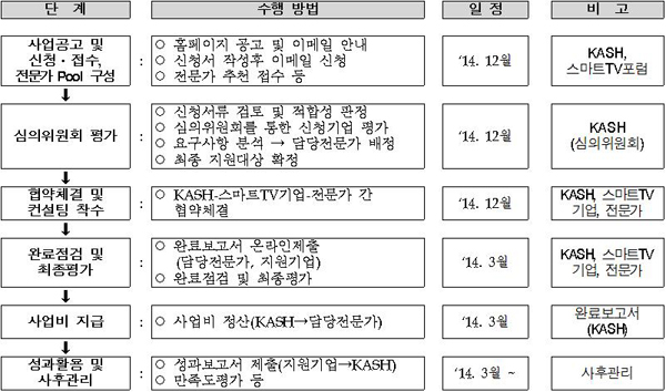 스마트TV 중소기업의 전문기술 및 사업화를 지원하고 환경변화에 빠르게 대응하도록 지원하기 위한 「2014년 스마트TV 관련 중소기업 기술 및