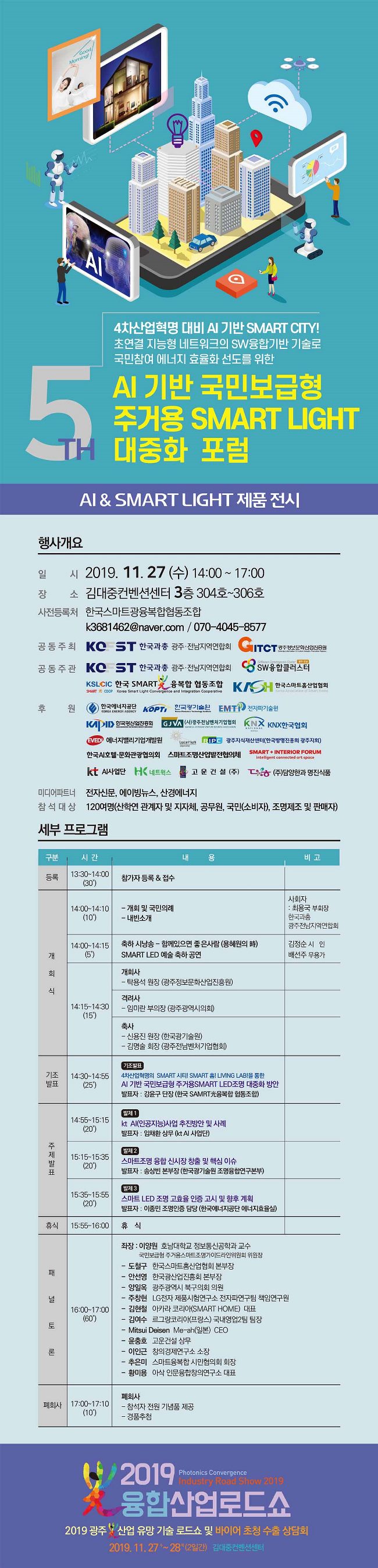 제5회 AI 기반 국민보급형“주거용SMART LIGHT " 대중화 포럼 개최 안내