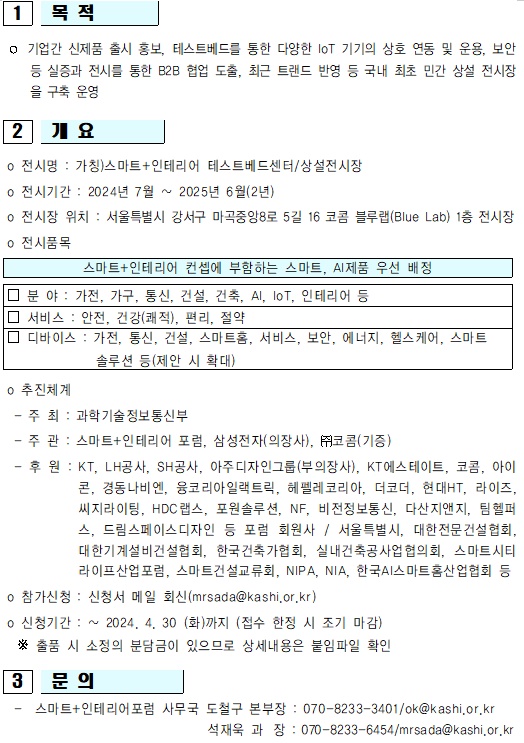 스마트+인테리어 테스트베드센터/상설전시장 참가 모집 안내(마감 4.30)